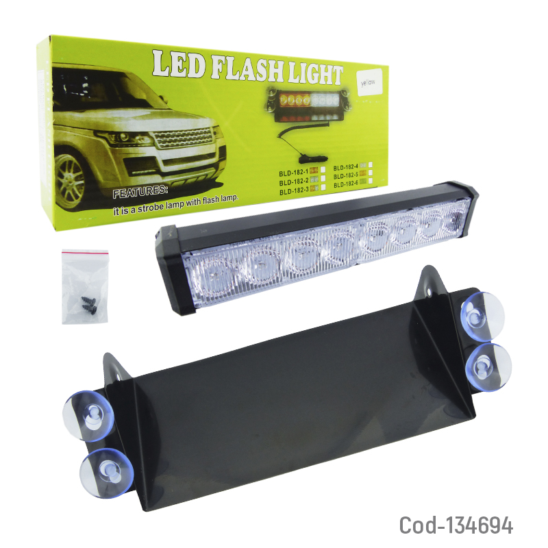 Baliza de 8 led strobo Tamaño grande a 12 volt en color ámbar, con accesorios para fijar en el parabrisas, con 3 modos de iluminación y con el tamaño adecuado para cualquier tipo de auto. Se conecta al encendedor de cigarrillos y tiene interruptor de encendido. Producto de alta calidad en caja.