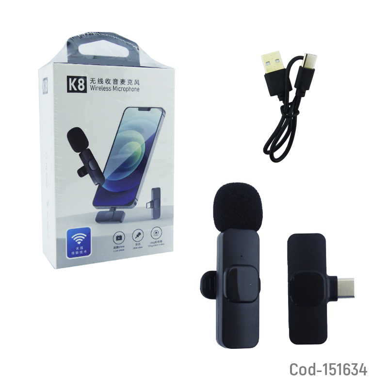 Micrófono inalámbrico LAVALIER para smartphones. Este dispositivo, con su práctica conexión Bluetooth y diseño TYPE-C, ofrece una calidad de sonido excepcional sin la restricción de cables. Compatible con una amplia gama de dispositivos móviles, producto en caja.
