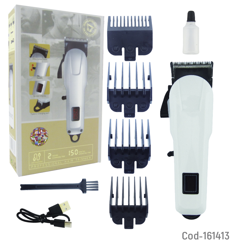 Máquina barbera y corta pelo modelo GX-838, diseñada para cortes precisos y perfilados. Cuenta con indicador de carga LED y puerto USB Type-C para carga rápida y conveniente. Ideal para uso doméstico o profesional. Producto en caja.