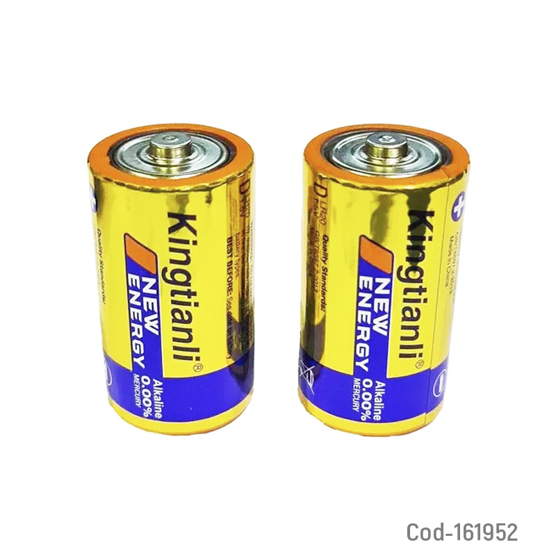 Pila marca KINGTIANLI tipo D alcalina, ideal para dispositivos de alto consumo energético como linternas, radios y juguetes. Ofrece larga duración y rendimiento constante. Producto en blíster.
