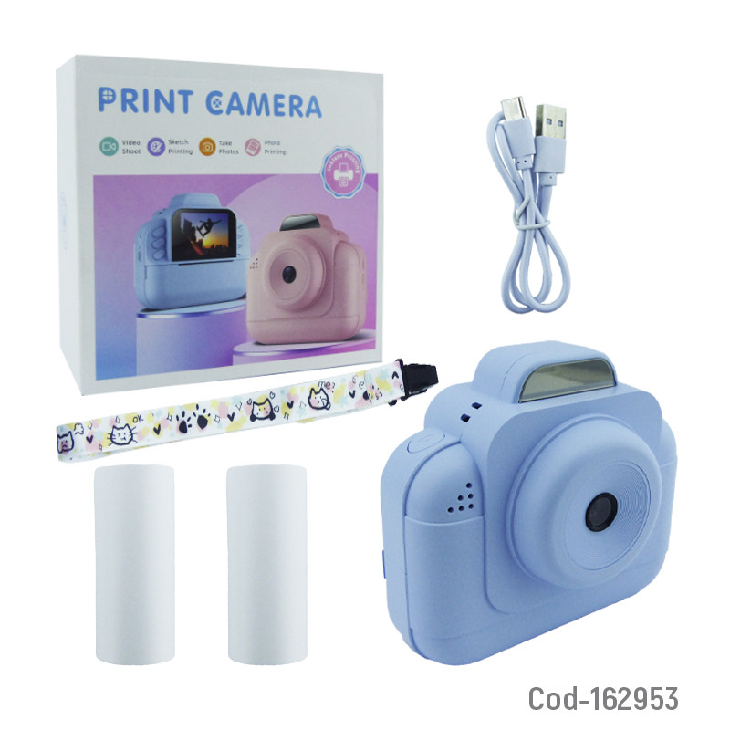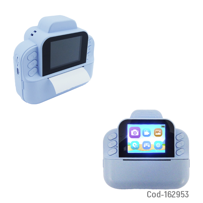 Cámara digital para niños con pantalla integrada, impresora y juegos incluidos. Batería recargable por USB, ideal para que los más pequeños exploren la fotografía y se diviertan imprimiendo sus propias fotos. Producto en caja.