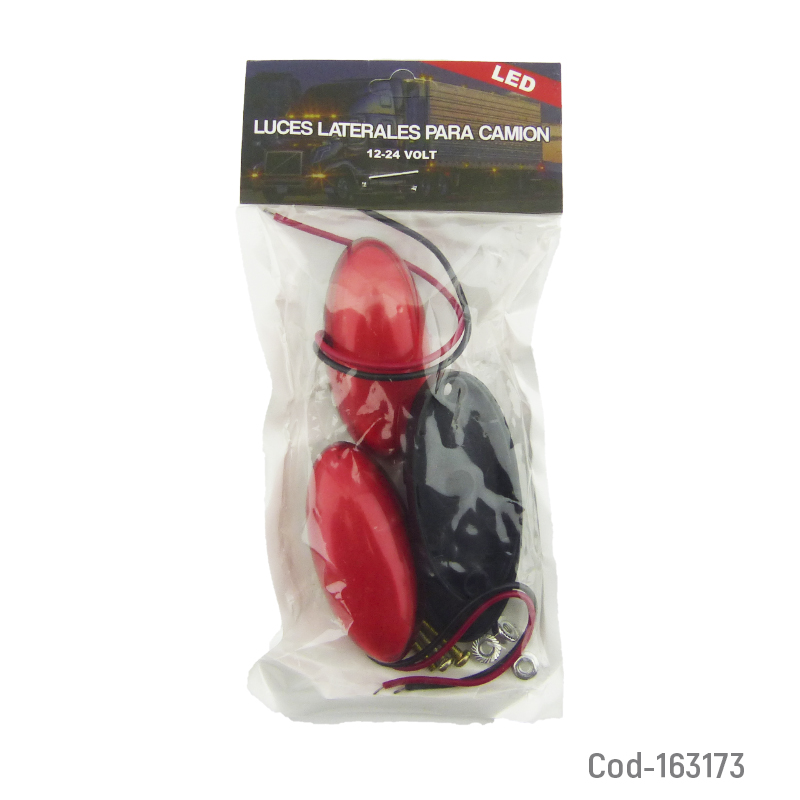 Luz LED lateral para camión de 12 a 24 V, disponible en variedad de colores. Proporciona iluminación eficiente y duradera para señalización y seguridad en vehículos, producto en bolsa.