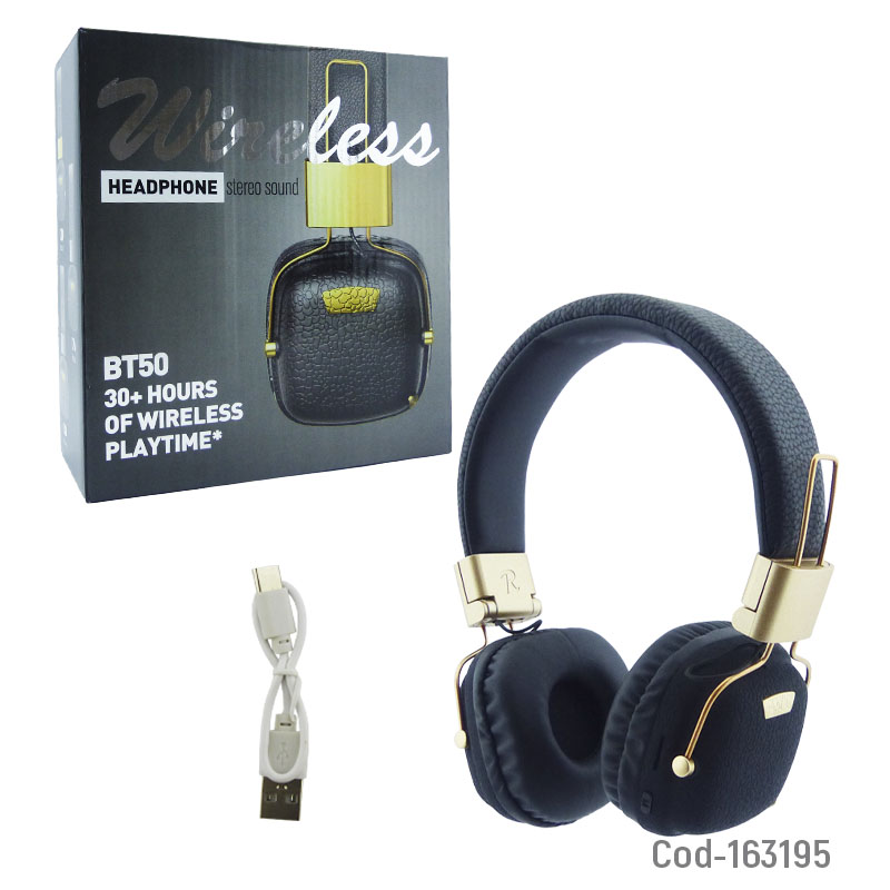 Audífono cintillo bluetooth modelo B50 con radio FM, soporte para tarjeta TF y batería recargable. Ofrece sonido de alta calidad, confort en uso prolongado y conectividad inalámbrica estable, ideal para música y llamadas, producto en caja.