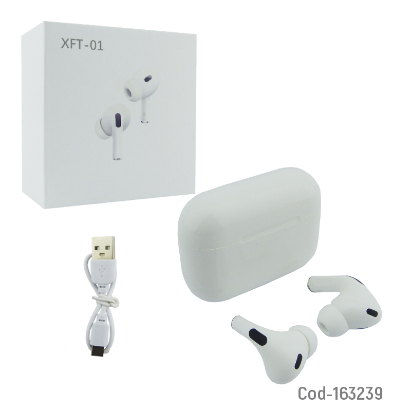 Audífonos True Wireless bluetooth modelo XFT-01 con cargador magnético que incorpora botones de control. Ofrecen sonido nítido, conexión inalámbrica estable y diseño ergonómico, ideales para música y llamadas, producto en caja.