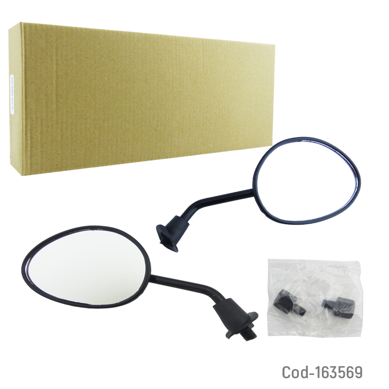 Espejo universal para moto con hilo de 10 mm, compatible con una amplia variedad de modelos. Ofrecen visión clara, buena estabilidad y fácil instalación. Producto presentado en caja.