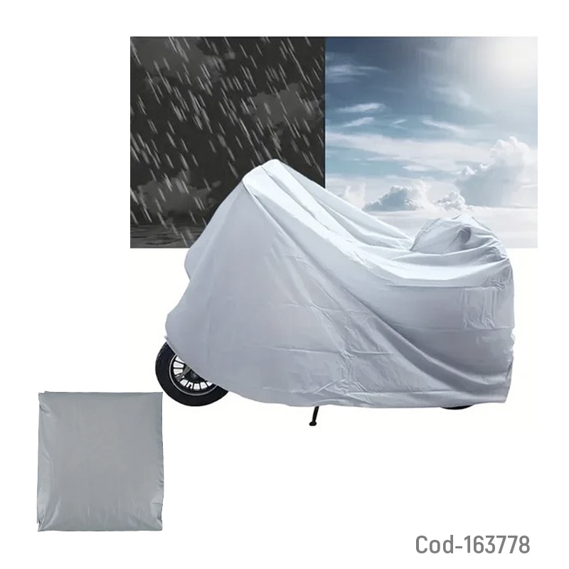 Funda para moto, WATERPROOF, talla XL. Ideal para proteger tu moto de lluvia, polvo y rayos solares, manteniéndola limpia y en buen estado. Producto en bolsa.