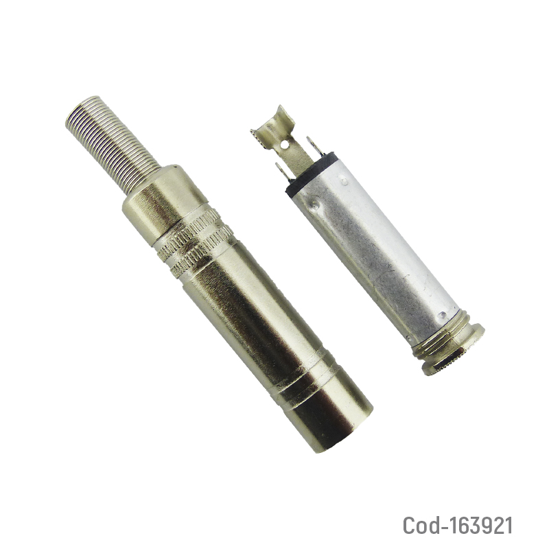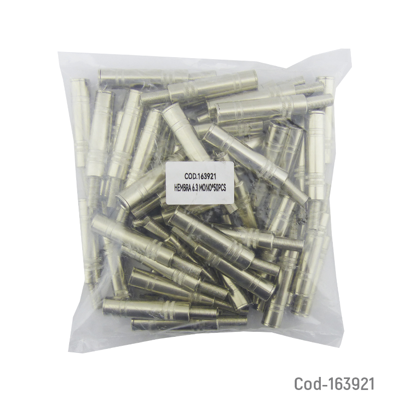 Conector hembra jack 6.3?mm mono con resorte, ideal para conexiones de audio seguras y duraderas. Facilita la instalación en equipos musicales y electrónicos. Producto en bolsa.