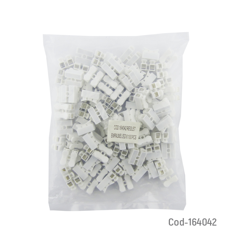 Regleta de PVC con empalme rápido, diseñada para facilitar la conexión de tiras LED de manera segura y eficiente. Ideal para instalaciones rápidas y ordenadas en cualquier espacio. Producto en bolsa.