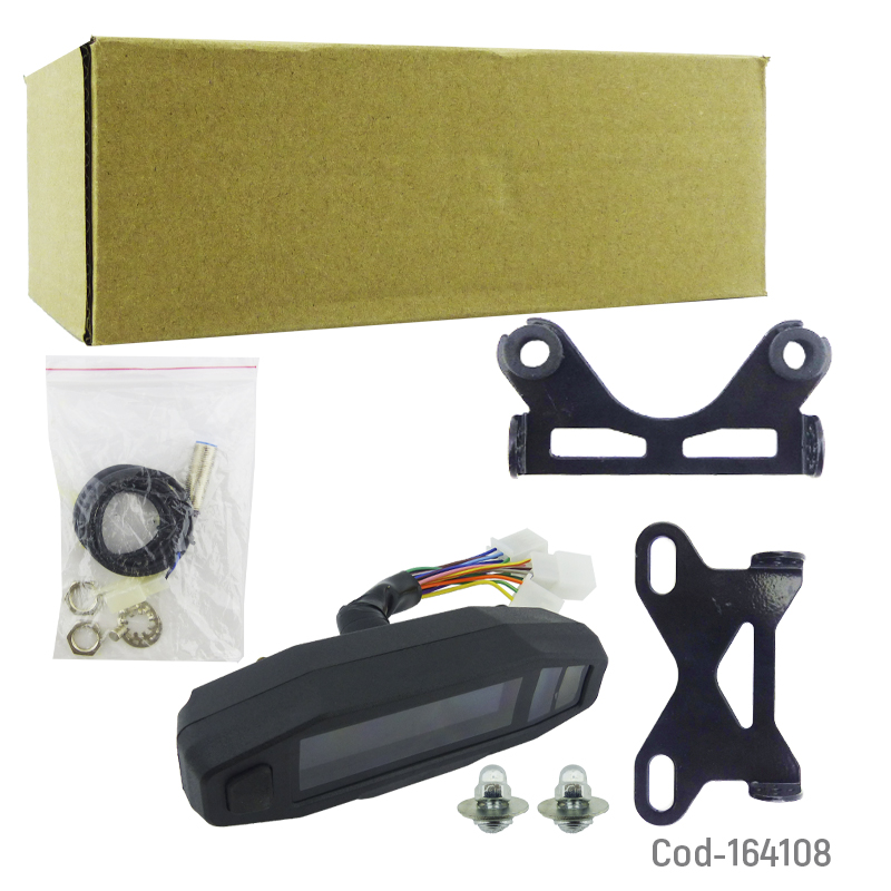 Velocímetro para moto full digital universal que muestra rpm, indicador de marchas, giros y nivel de bencina. Pantalla clara y moderna, compatible con distintos modelos de motocicleta. Producto en caja.