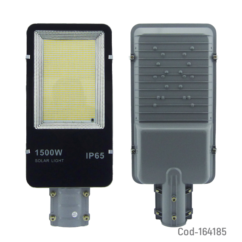 Foco solar con brazo de 1500 W, luz cálida, diseño en una sola placa con 1216 LED de alta potencia que brindan iluminación amplia y uniforme. Incluye control remoto para encendido y modos de funcionamiento. Ideal para exteriores. Producto en caja.