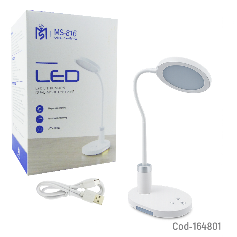 Lámpara de escritorio touch modelo MS-816 con 60 LED, tres tonos de luz, función de luz nocturna y batería recargable. Ideal para estudio y oficina. Producto en caja