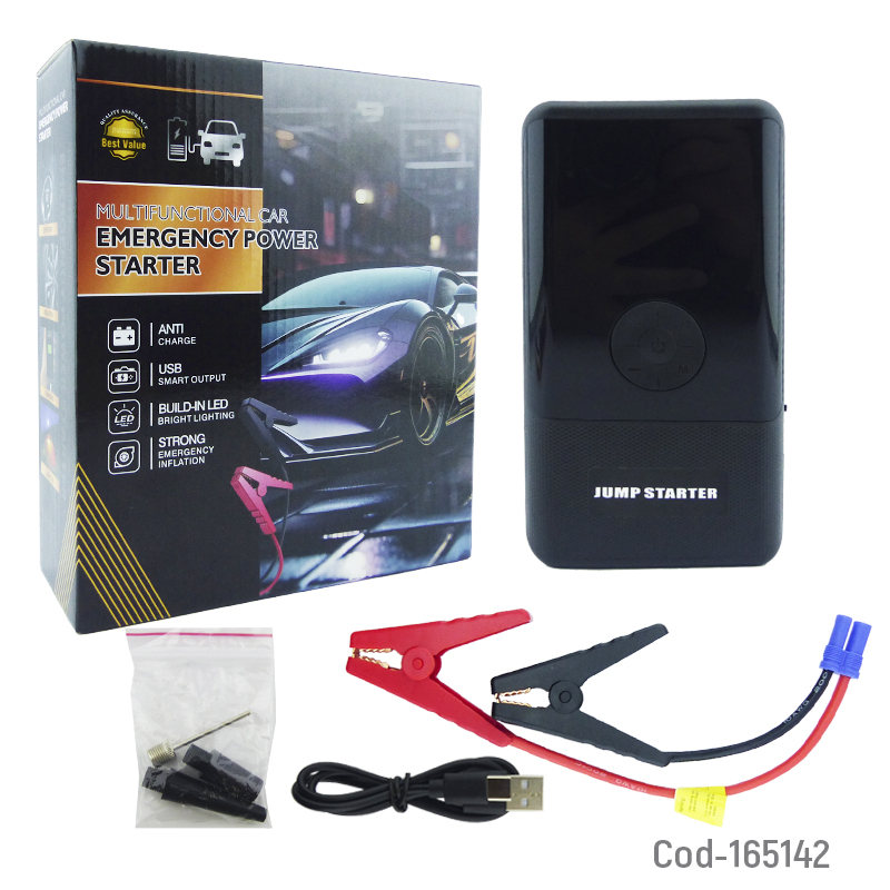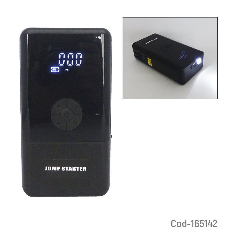Partidor de batería con compresor de aire integrado, diseñado para autos y motos hasta 1800 cc a bencina. Permite arrancar el vehículo en caso de batería descargada y cuenta con compresor para inflar neumáticos. Ideal para emergencias y uso diario. Producto en caja.