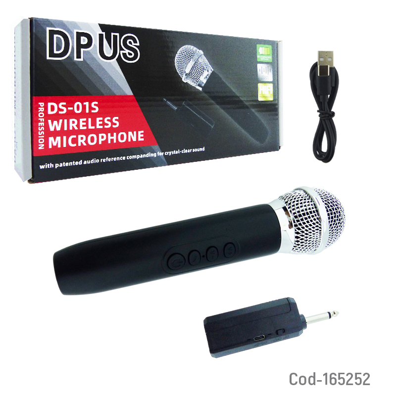 Micrófono inalámbrico modelo DS-01S recargable, con diseño compacto y portátil. Ofrece sonido claro y estable, ideal para presentaciones, grabaciones, clases, karaoke y eventos. Fácil de usar y transportar. Producto en caja.