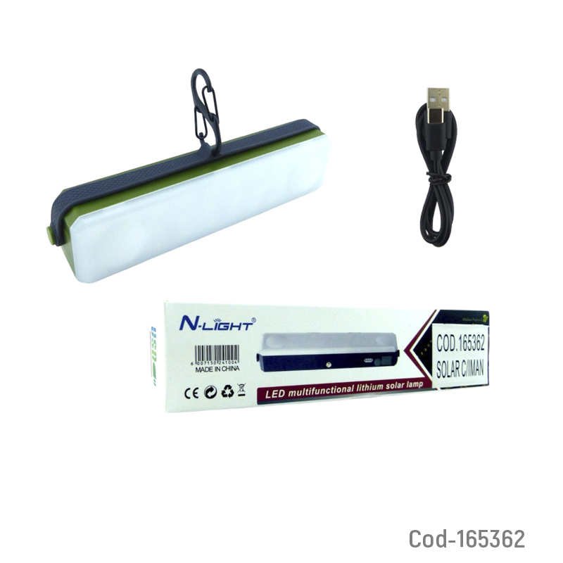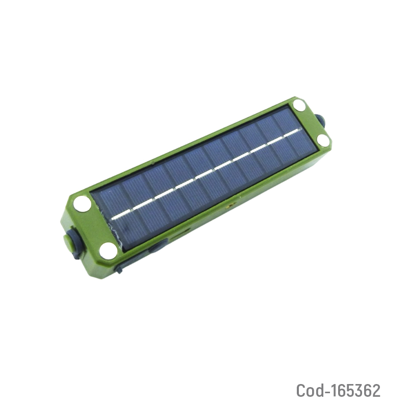 Lámpara solar LED modelo T100 recargable, con imán incorporado para fácil fijación. Práctica y funcional, ideal para uso interior o exterior. Disponible en dos colores. Producto presentado en caja.