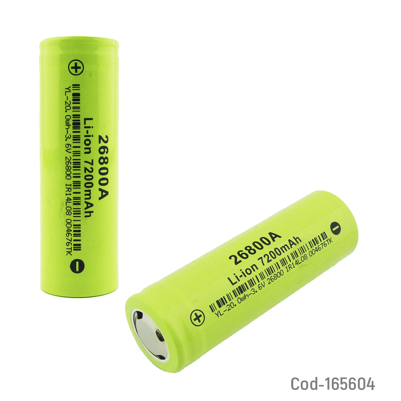 Pila plana modelo 26800, recargable, 3,6 volt, capacidad de 7200 mAh, alto rendimiento y larga duración para dispositivos compatibles.
