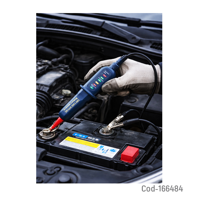 Tester para batería de 12 volt para auto o moto modelo VT15C, ideal para verificar el estado y nivel de carga de la batería de forma rápida y sencilla. Diseño práctico y fácil de usar, apto para uso doméstico o automotriz. Producto presentado en blíster.