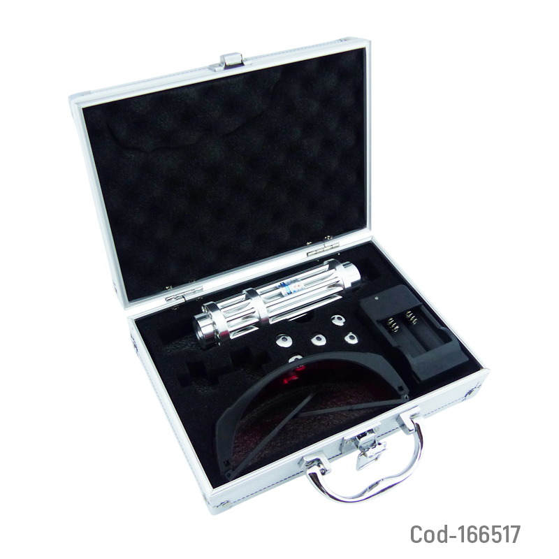 Puntero láser azul de 50000 mw, alta potencia tipo quemador, ideal para uso profesional, incluye kit con maleta de transporte, funciona con pila recargable, diseño resistente y práctico, producto completo y fácil de usar.