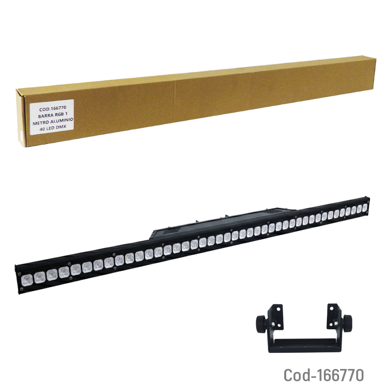 Barra de luz LED RGB con 40 LED. Fabricada en aluminio y con longitud de 1 metro. Ideal para iluminación decorativa, eventos y ambientación. Producto en caja.