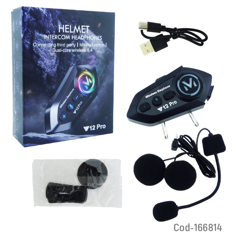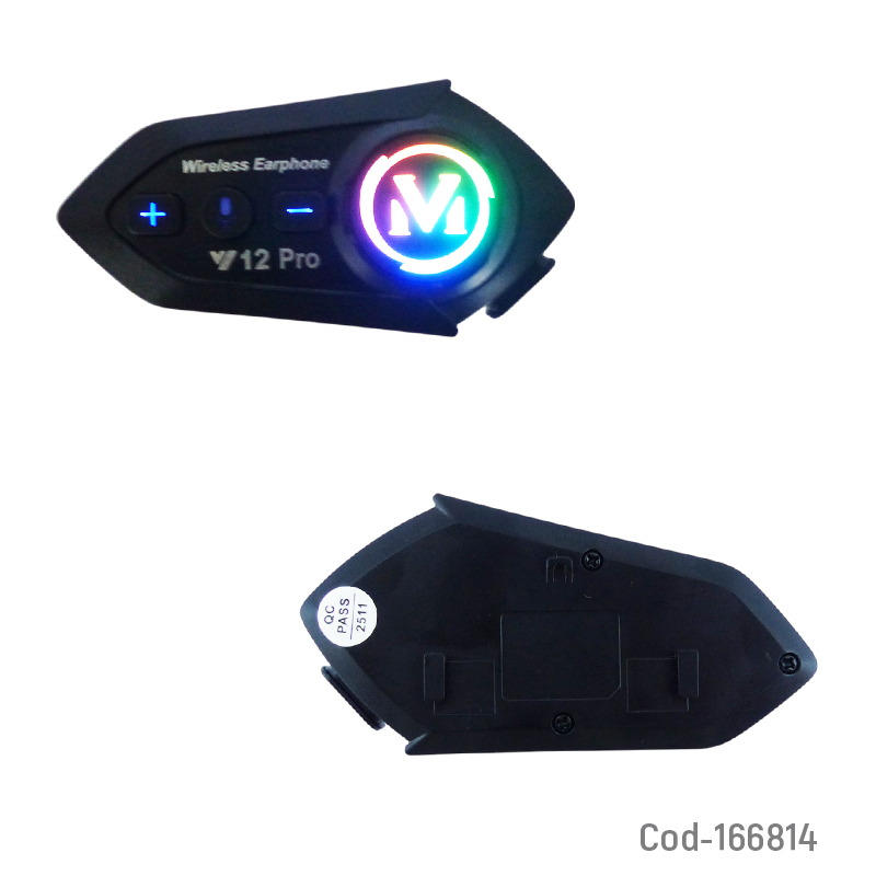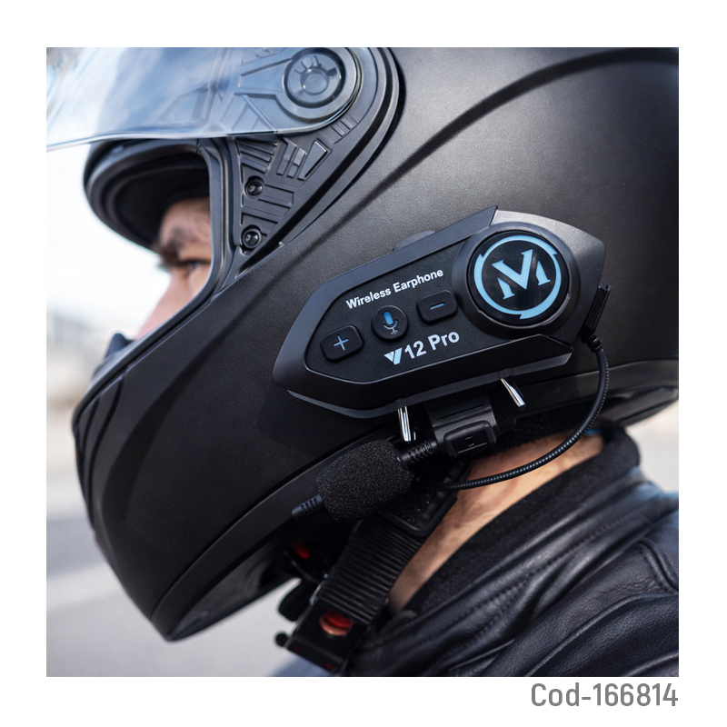 Bluetooth para casco modelo V12 con intercomunicador, ideal para comunicación clara entre conductores y acompañantes al conducir moto. Permite realizar y recibir llamadas, escuchar música y seguir indicaciones GPS sin soltar el manubrio. Cuenta con conexión bluetooth estable, micrófono y controles de fácil acceso. Diseño compacto y resistente para uso en moto. Producto de alta calidad, presentado en caja.