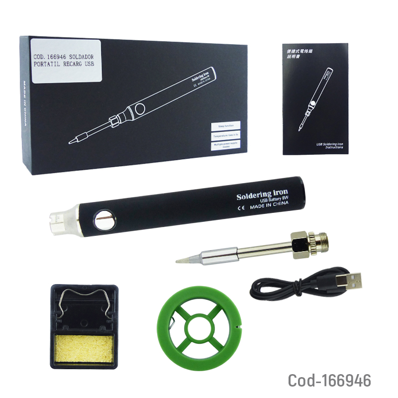 Soldador inalámbrico de 8 watt, recargable por USB tipo-C, calentamiento rápido y uso práctico sin cables, ideal para trabajos electrónicos y reparaciones ligeras, diseño compacto, producto presentado en caja.