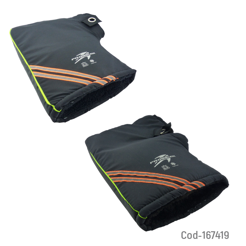 Cubre puños para moto de tela y chiporro, diseñados para proteger las manos del frío y el viento durante la conducción. Interior abrigado que brinda mayor comodidad en climas adversos y ajuste práctico al manubrio. Disponibles en dos presentaciones de 16 y 22 cm de apertura. Producto en bolsa.