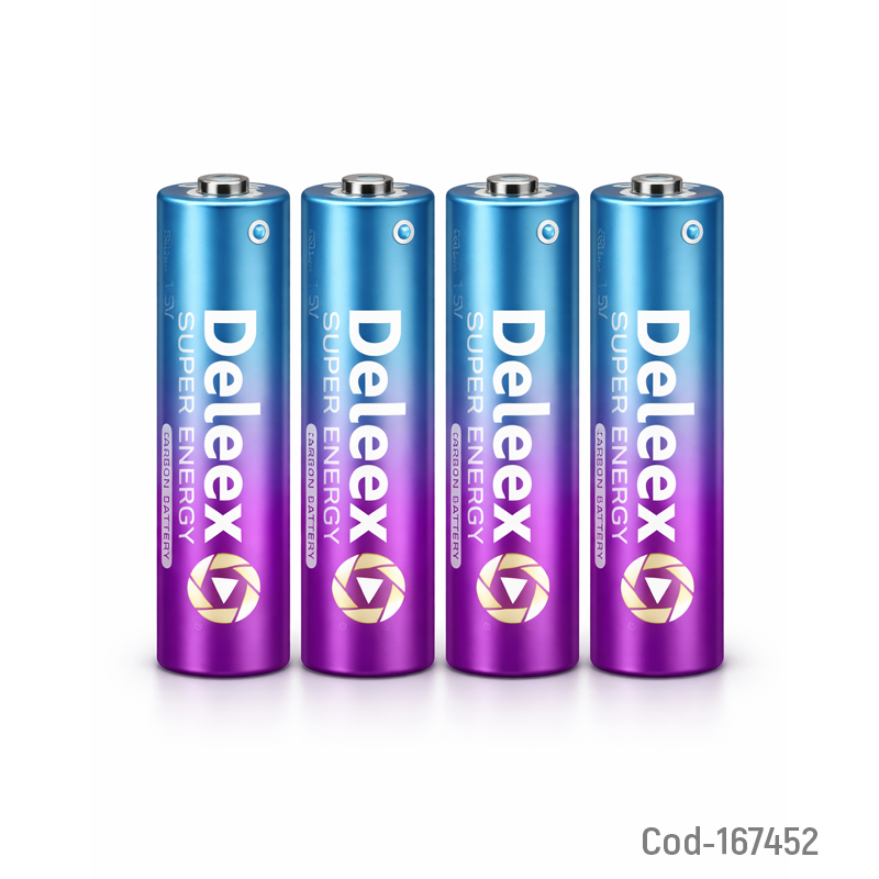 Pila DELEEX AA de 1.5 volt, set de 8 unidades. Tipo carbón, ideal para uso diario. Presentación en blíster.