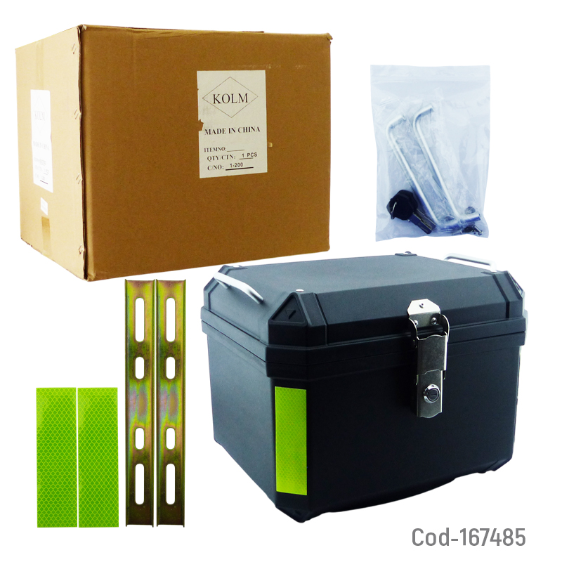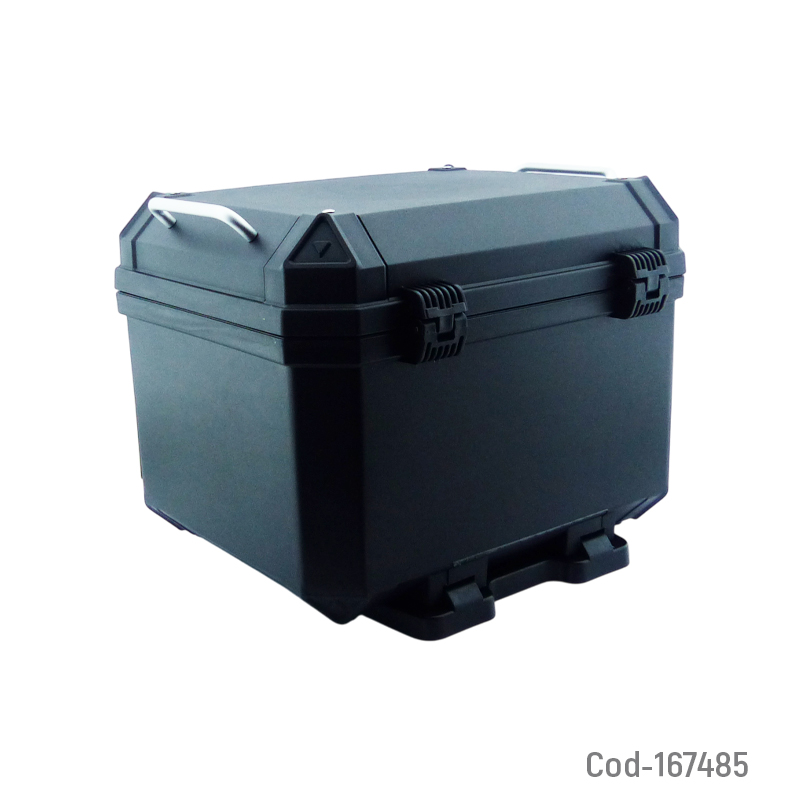 Maleta para moto universal modelo MODENA, fabricada en PVC resistente y de alta durabilidad. Tiene una capacidad de 57 litros, ideal para transportar casco, equipaje u objetos personales de forma segura. Incluye forro interno de lujo que protege el contenido y mejora la presentación. Diseño sin respaldo. Producto presentado en caja.