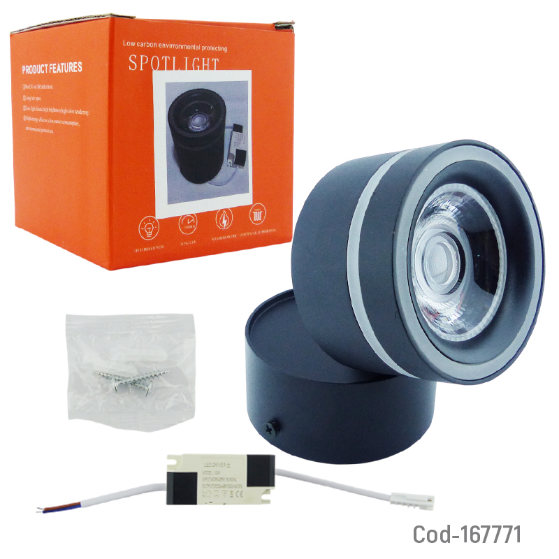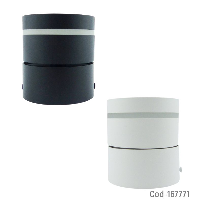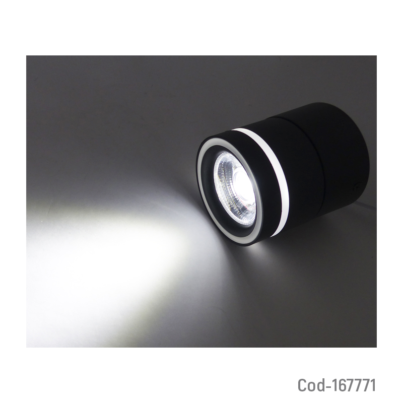 Foco LED Spotlight sobrepuesto modelo Roma de luz blanca, ideal para iluminación decorativa y focalizada en interiores. Diseño moderno que se adapta a distintos espacios. Disponible en dos colores. Producto presentado en caja.
